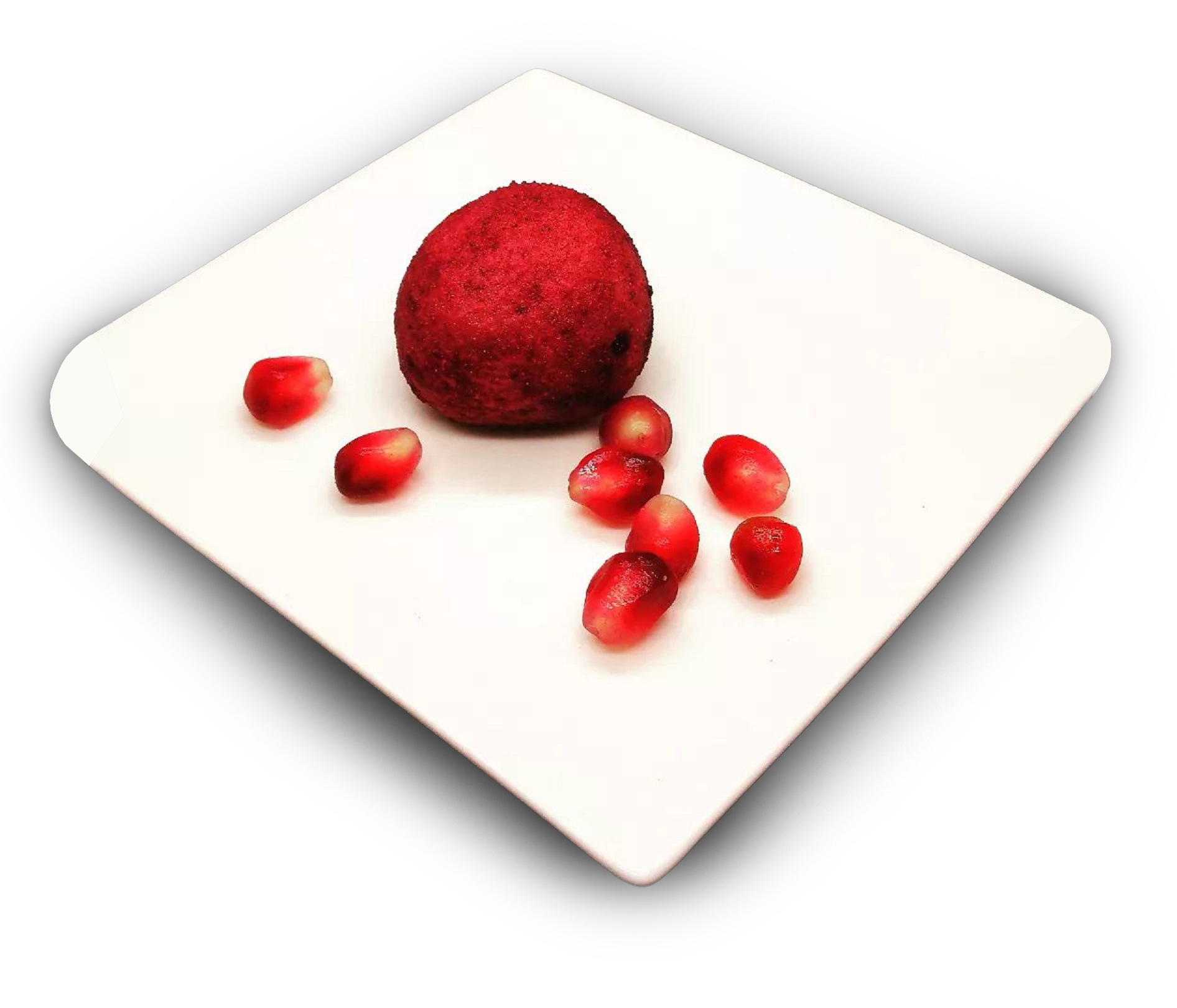 A delicate balance of sweet and tart, this juicy truffle melts in your mouth and leaves you salivating. Coated in a mix of red beet powder and pomegranate powder gives it a beautiful rich color.